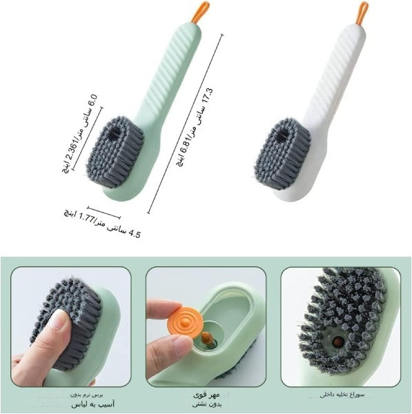 - استفاده از برس: با مالش سطح مورد نظر، مواد شوینده به تدریج از مخزن خارج شده و رشتههای برس را مرطوب میکنند.