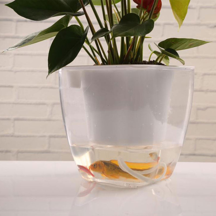 این گلدان از دو قسمت تشکیل شده: یک گلدان سفید رنگ درون یک محفظه شفاف از جنس آکریلیک. درون گلدان، لولهای وجود دارد که به صورت خودکار آب را به گیاه میرساند و خاک را مرطوب نگه میدارد. محفظه پایینی نیز میتواند به عنوان یک آکواریوم کوچک برای نگهداری ماهی استفاده شود. این ویژگی نه تنها زیبایی دوچندانی به محصول میدهد، بلکه احساس تمایز و خلاقیت در فضای شما را افزایش میدهد.