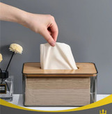 جعبه دستمال کاغذی طلقی دارای بدنهای شفاف و به رنگ دودی بوده که باعث میشود محتوای داخلی به صورت ملایم دیده شود. درب آن از جنس چوب با رنگهای دلنشین و زیبا طراحی شده و حفرهای در مرکز آن وجود دارد که دستمالها به راحتی از آن خارج میشوند. این جعبه به گونهای ساخته شده که درب آن کاملا روی بدنه قرار میگیرد و اجازه ورود گرد و غبار به داخل را نمیدهد. وزن سبک و قابلیت جابهجایی آسان، از دیگر ویژگیهای مهم این محصول است.