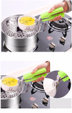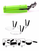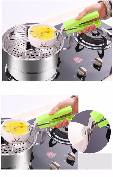 کارکرد این دستگیره شبیه یک انبردست است. برای استفاده، کافی است دستهها را در دست بگیرید، سری آن را از هم باز کنید و روی لبه ظرف قرار دهید. با فشردن دستهها، سری دستگیره ظرف را محکم میگیرد و به راحتی میتوانید آن را بلند و جابجا کنید. سری خمیده آن نیز امکان گرفتن محکم و بدون لرزش از ظروف را فراهم میکند.