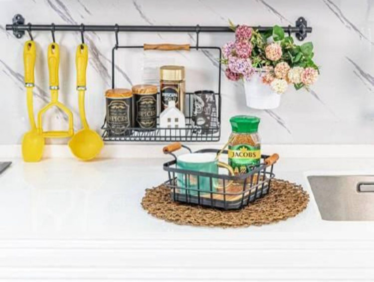 - سبد فلزی مشکی : مناسب برای نگهداری لوازم دکوری، ادویهها، قند و یا وسایل آشپزخانه.