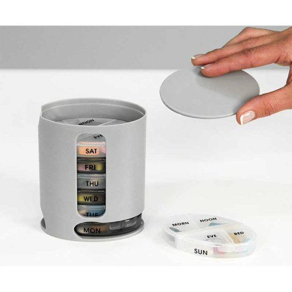 ساختار استوانهای و منظم: این محصول شامل یک محفظه اصلی استوانهای شکل، معمولاً از جنس پلاستیک مقاوم و به رنگی خنثی مانند طوسی است که ظاهری مرتب و جمعوجور دارد.محفظههای داخلی روزانه (قابل جداسازی): قلب این سیستم، تعدادی محفظه یا دیسک گرد داخلی است که به صورت هوشمندانهای روی هم قرار میگیرند. هر کدام از این محفظههای داخلی، نمایانگریک روز کامل است.تقسیمبندی دقیق برای اوقات روز: مهمترین ویژگی هر محفظه روزانه، تقسیمبندی داخلی آن بهپنج بخش مجزا است. این بخشها معمولاً با برچسب یا علامتگذاری برای اوقات مختلف شبانهروز مشخص شدهاند (مانند: صبح، ظهر، عصر، شب، و قبل از خواب یا نیمهشب) تا بتوانید قرصهای مخصوص هر زمان را دقیقاً در جای خود قرار دهید.جنس شفاف محفظههای داخلی: بخشهای داخلی که قرصها در آن قرار میگیرند، از پلاستیک شفاف ساخته شدهاند. این ویژگی به شما امکان میدهد با یک نگاه، محتویات هر بخش و اینکه آیا قرص آن نوبت مصرف شده است یا خیر را ببینید.مکانیزم خروج آسان: در پایینترین قسمت محفظه استوانهای اصلی، یک دریچه یا حفره خروجی تعبیه شده است. با چرخاندن یا برداشتن محفظههای بالایی، میتوانید به راحتی محفظه روز مورد نظر (که به پایینترین قسمت رسیده) را از این دریچه خارج کنید.ظرفیت بالا (هفتگی تا ماهانه): بسته به تعداد محفظههای داخلی (که معمولاً بین 7 تا 31 عدد متغیر است)، میتوانید داروهای یک هفته کامل یا حتی یک ماه خود را از قبل آماده و مرتب کنید. این ویژگی باعث صرفهجویی قابل توجهی در زمان و کاهش استرس روزانه میشود.قابلیت حمل جداگانه: یکی از بزرگترین مزایای این مدل، امکان جدا کردن کامل هر محفظه روزانه از مجموعه است. این به شما اجازه میدهد تا فقط داروهای همان روز را با خود به محل کار، مهمانی یا سفر ببرید، بدون نیاز به حمل کل جعبه یا ورقههای متعدد قرص.