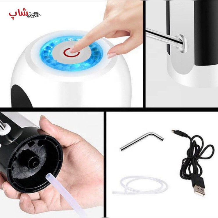 شارژ اولیه: قبل از اولین استفاده، دستگاه را با کابل USB همراه، به مدت تقریبی 3 تا 5 ساعت به شارژ بزنید تا باتری کاملاً پر شود (چراغ LED وضعیت شارژ را نشان میدهد).اتصال قطعات: شلنگ سیلیکونی را به ورودی زیر پمپ و لوله خروجی استیل را به قسمت جلوی پمپ متصل کنید.نصب روی گالن: پمپ مونتاژ شده را روی دهانه گالن آب قرار دهید و مطمئن شوید شلنگ سیلیکونی به خوبی داخل گالن رفته است.شروع استفاده: با یک بار فشردن دکمه روی پمپ، دستگاه روشن شده و آب خارج میشود. با فشردن مجدد همان دکمه، جریان آب قطع و پمپ خاموش میشود.