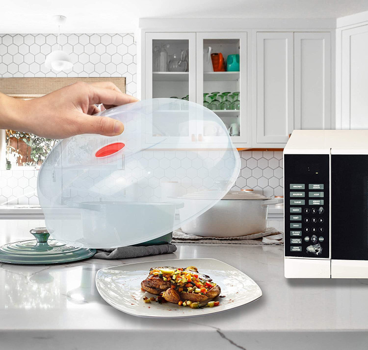 درپوش ماکروفری سوپاپ دار از جنس پلاستیک با کیفیت با مواد اولیه ساخته شده که مجهز به سوپاپ بخار می باشد. این محصول همانند یک درپوش روی ظرف قرار می گیرد و قابلیت باز و بسته شدن سوپاپ وجود دارد. این محصول قابلیت شستشو در ماشین ظرفشویی را دارد. در بسته بندی این محصول دو درپوش در قطر 24 و 29 سانتی متر وجود دارد.
