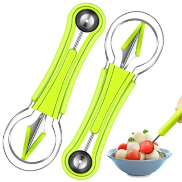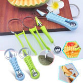 . سه ابزار کاربردی در یک بسته: ای مجموعه شامل سه ابزار مختلف برای برش و حکاکی روی میوه ها هست.این ابزار ها شامل یک چاقوی مخصوص برش میوه، یک قاشق تویی برای ایجاد توپ های میوه ای و یک ابزار حکاکی برای ایجاد طرح های زیبا از جنس استیل ضد زنگ ساخته شده است که مقاومت بالایی در برابر خوردگی و زنگ زدگی دارد.همچنین دسته این ابزار ها از جنس پلاستیک نرم و ضد لغزش است که کار با آن را بسار آسان میکند.