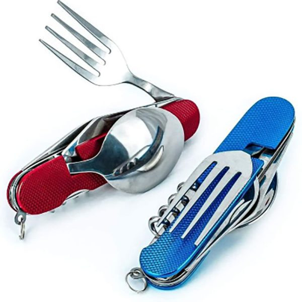 قابلیت جدا شونده و جمع شونده به صورت تاشو جنس استیل ضد زنگ دارای: درب بازکن، چاقو ، بطری بازکن، قوطی بازکن ، چنگال ، قاشق ، چوب پنبه باز کن بسیار کار آمد و قابل حمل |