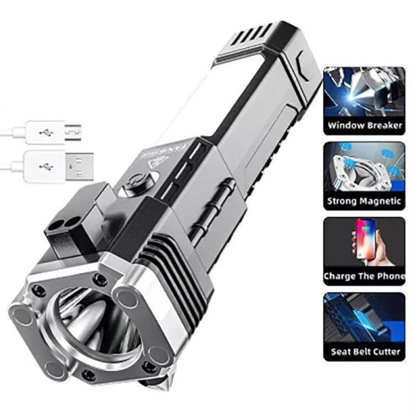 دارای چکش اتش نشانی-دارای تیغ مخفی برای بریدن کش و طناب.دارای مگنت اهن ربا برای چسبیدن به اهن و تعمیر خودرو- قابلیت استفاده بعنوان پاور بانک در مواقع اضطراری-قابلیت شارژ شدن توسط شارژر موبایل میباشد. |