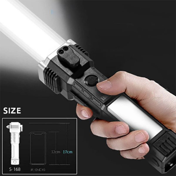 5. **برش کمربند ایمنی:** یک تیغه کوچک و تیز در بدنه چراغ قوه قرار دارد که برای برش کمربند ایمنی در مواقع اضطراری طراحی شده است. این قابلیت به شما کمک میکند تا به سرعت و به آسانی کمربند ایمنی خود را باز کرده و از خودرو خارج شوید.