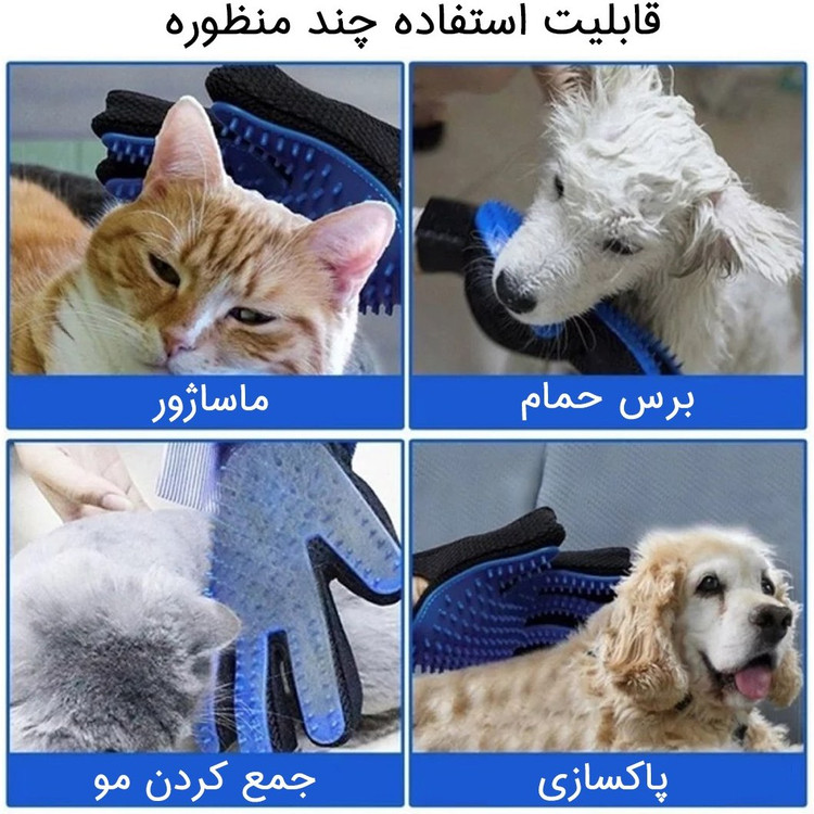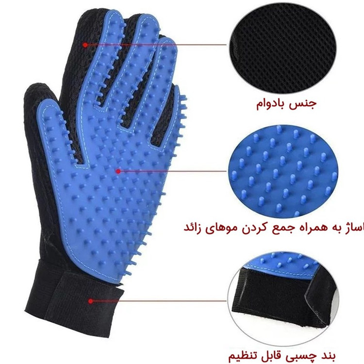 ارائه شده در بسته بندی 1 عددی سهولت در استفاده پوشش سطح روی دست با استفاده از پارچه دارای منافذ برای عبور هوا از میان خود مجهز به مچ بند برای ثابت شدن دست داخل دستکش با قابلیت تنظیم و عدم جدا شدن ناخواسته آن دارای سطح داخلی سیلیکونی با آج های لاستیکی برای جمع آوری موهای جداشده |