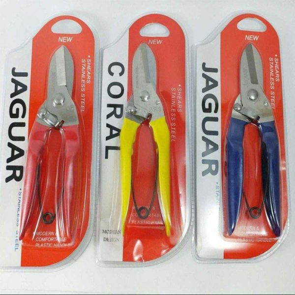 قیچی همه کاره با تیغه فولادی – دارای ضامن – دسته با روکش پلاستیکی |